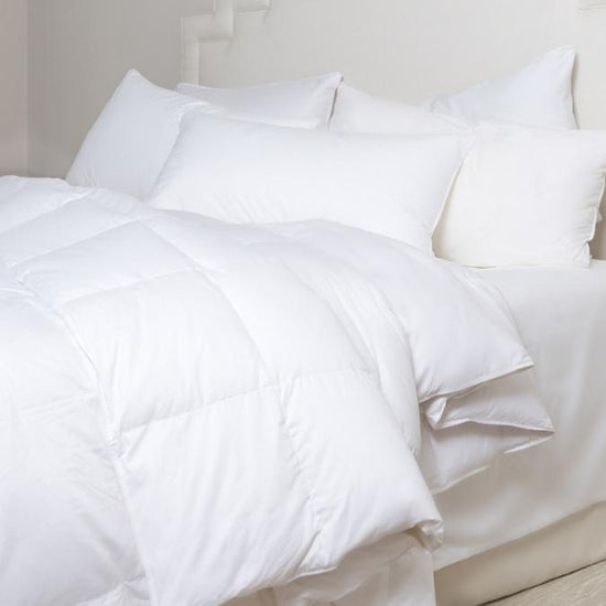 Known for its luxurious quality, goose down will exceed your expectations of loftiness, fill power and down. Down traps air and provides a warm, immersive texture that “puffs up” and gently hugs your body as you sleep