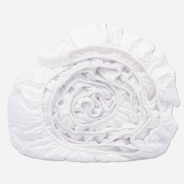 A beautiful finishing touch to any well-made bed, this elegantly woven Matelassé box spring cover is the little something extra needed to elevate the look of any bed. Made in Portugal with 100% mercerized Egyptian cotton, not only is this box spring cover elegant, it’s machine washable. Fully elasticized with a fabric platform, it accommodates box springs up to 18 inches.