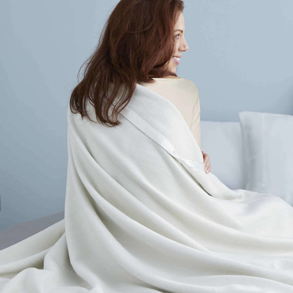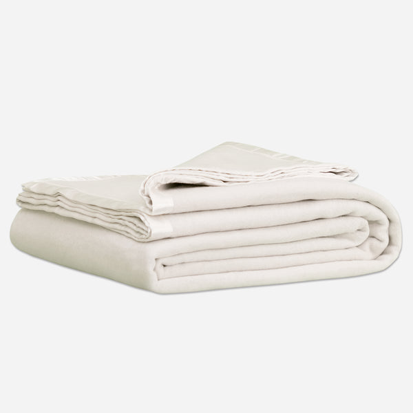 This Silk Blanket has a well-deserved cult following and is loved for both its weight and warmth. Made with the finest natural silk, this blanket has an incredibly soft feel and luster and is a natural color, free from any dye or bleach. Finished with an elegant satin binding, this blanket is a wonderful addition to any well-layered bed.
