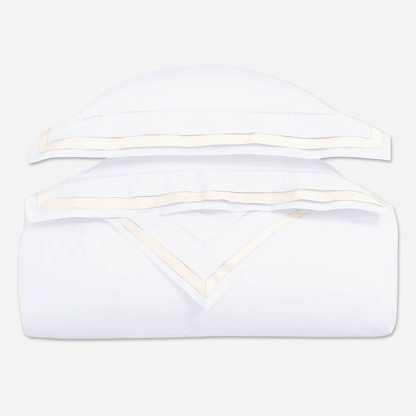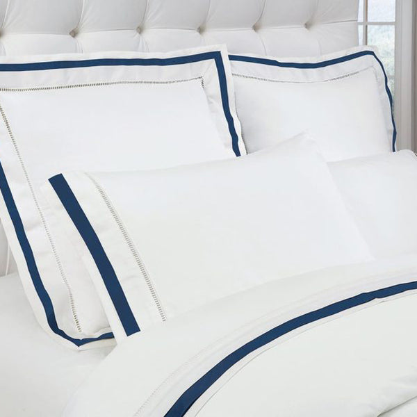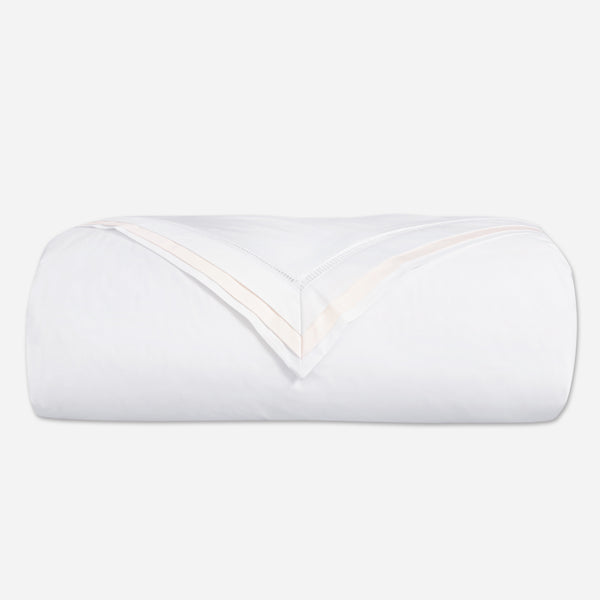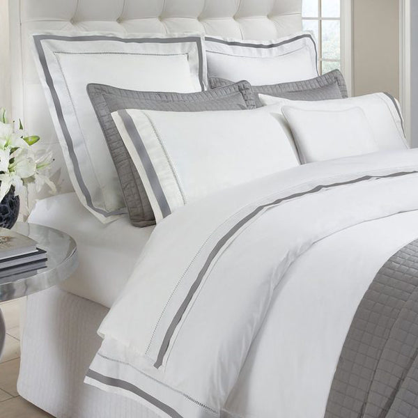 The Chelsea Duvet blends the best of modern and traditionally designed bedding to create an elegant bed filled with beautiful details. Featuring a luxe three-layer trim and lattice detailing, the Chelsea is an incredibly soft and silky sateen. Made in Portugal using the finest long staple cotton, the Chelsea is a favorite for those who enjoy impeccable craftsmanship and attention to detail.