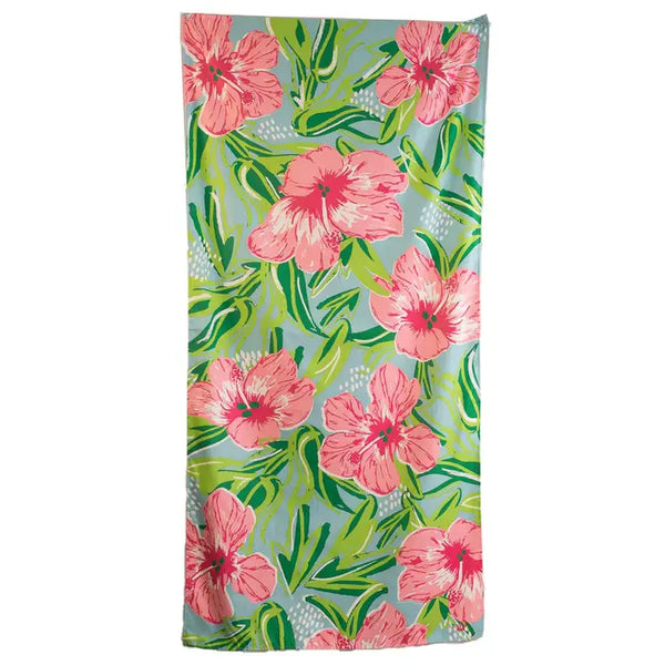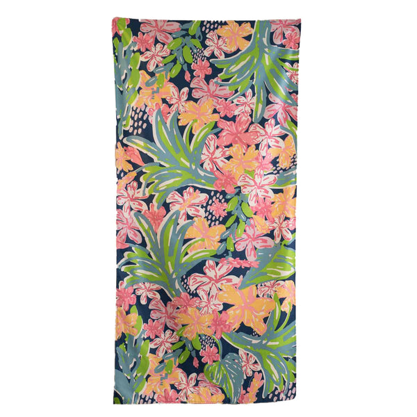 Unwind in style with the Grenada Beach Towel's captivating floral and tropical design. The navy backdrop adds a touch of sophistication, making it a fashionable accessory for your beach vacation. Say goodbye to sand-covered towels – our Grenada Beach Towel is sand-resistant, ensuring a clean and comfortable lounging experience.