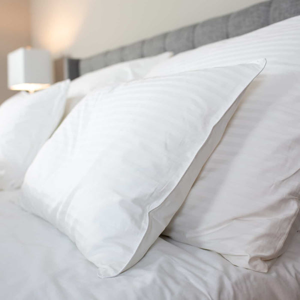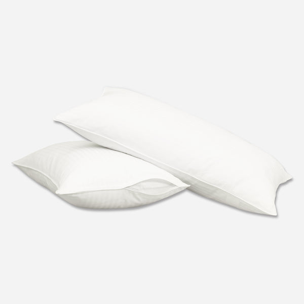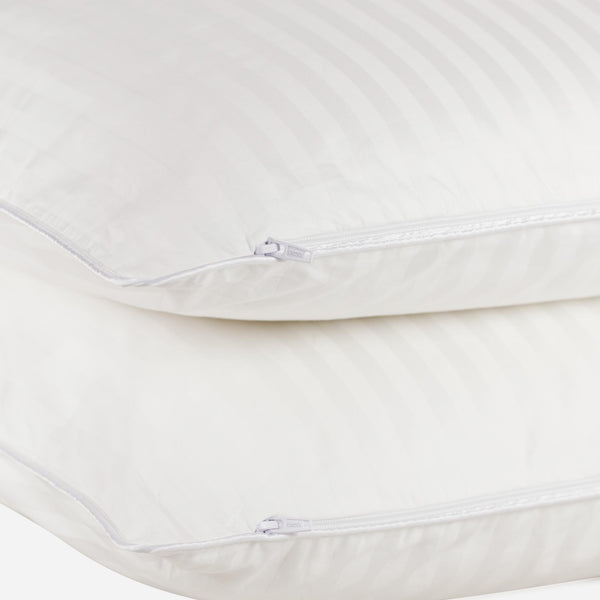 Fantastic for allergy sufferers, a pillow protector keeps your pillow clean and the dust at bay, all while extending the life of your pillows. Our pillow protectors are made with luxurious 100% Egyptian cotton sateen and finished with satin piping and a hidden zipper closure. Sold in a set of two.